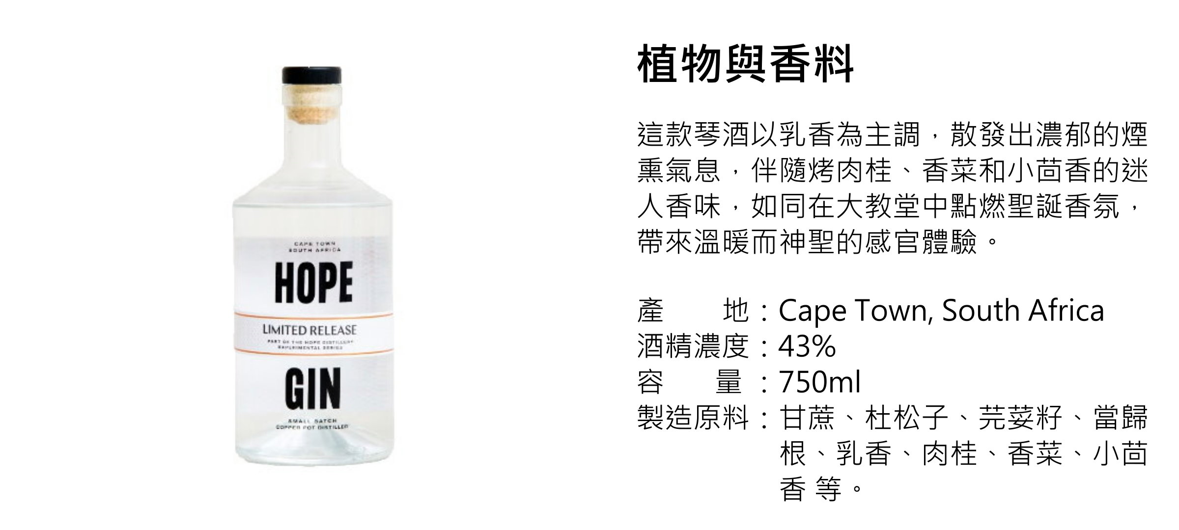Hope Frankincense Gin 希望 乳香琴酒 | 750ml NT$2,450 [43%]