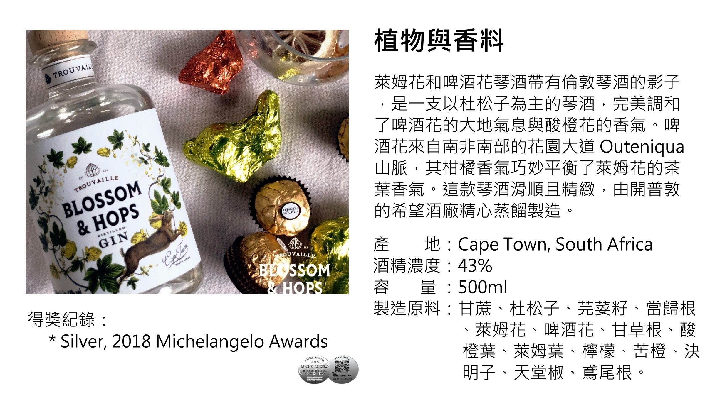 Trouvaille Blossom & Hops Gin 尋寶 萊姆花&啤酒花琴酒 | 500ml NT$1,850 [43%]
