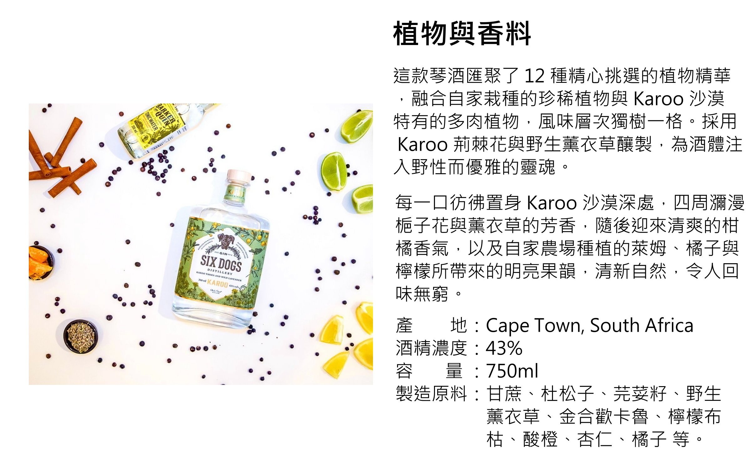 Six Dogs Karoo Gin 六犬 卡魯沙漠琴酒 | 750ml NT$2,600 [43%]