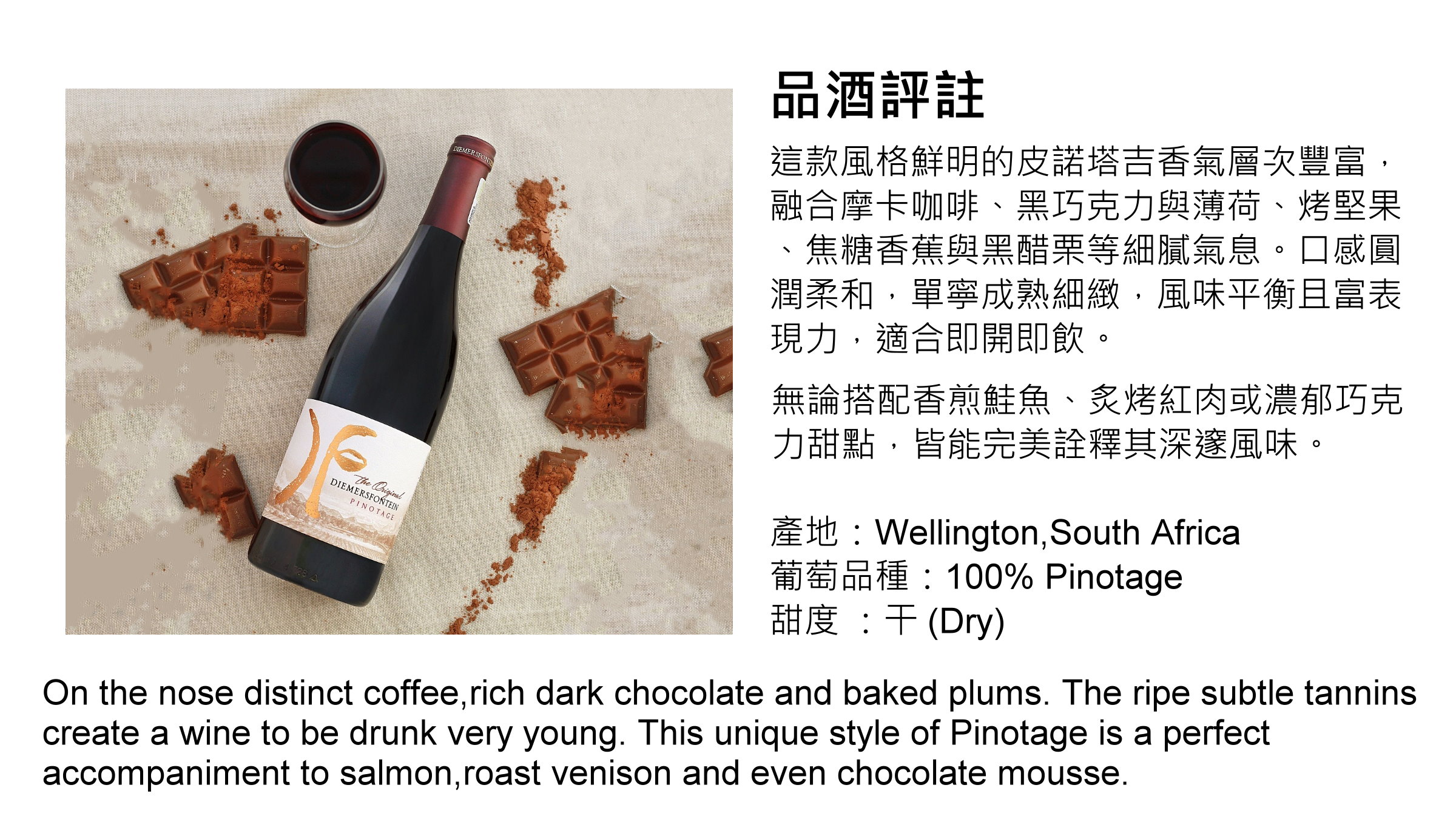Diemersfontein Pinotage 2022 迪摩斯峰登 (咖啡/巧克力)皮諾塔吉 | 750ml NT$940 [14%]