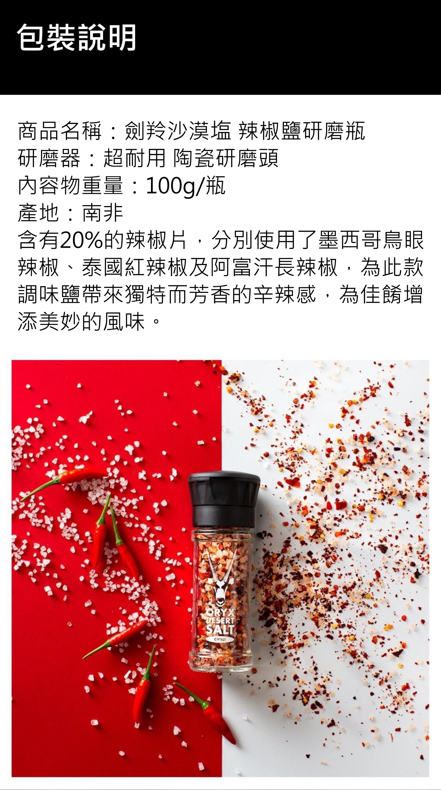 劍羚沙漠塩 粗白鹽 研磨瓶 | 100g (12瓶裝) NT$3,590 (平均每瓶NT$299,每瓶定價 ̶N̶T̶$̶ ̶3̶2̶0̶)