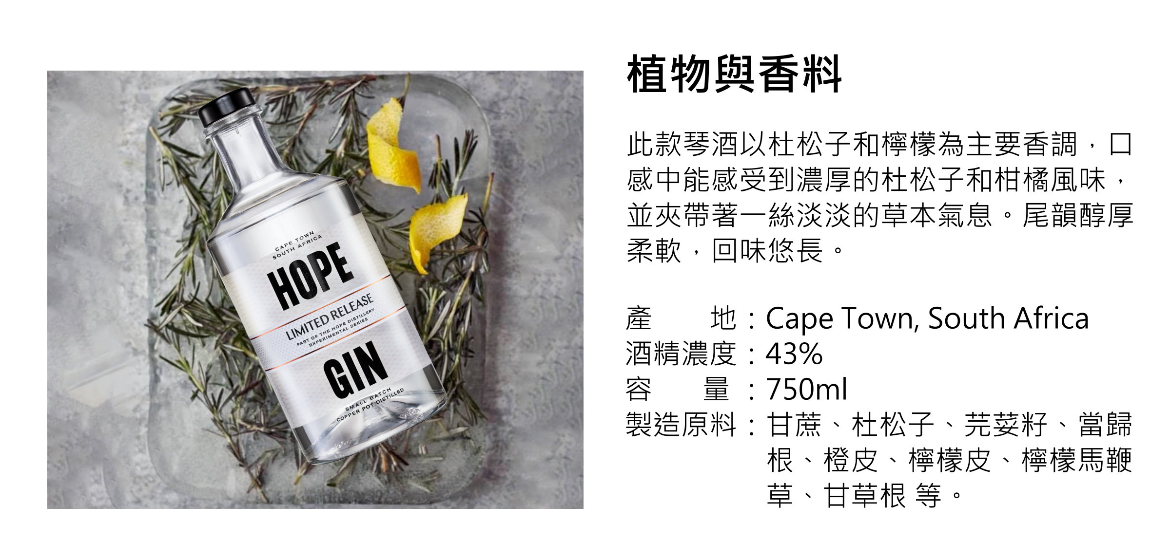 Hope Lemon Verbena Gin 希望 檸檬馬鞭草琴酒 | 750ml NT$2,500 [43%]