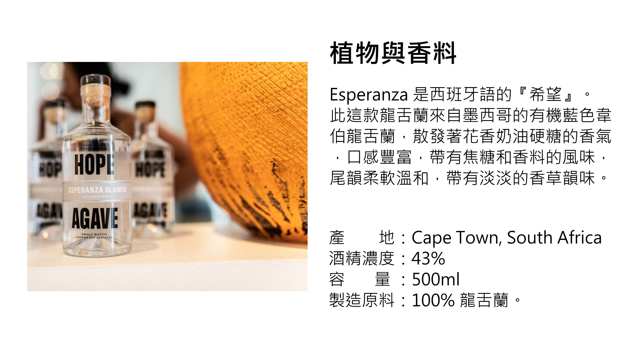 Hope Esperanza Agave 希望 銀龍舌蘭酒 | 500ml NT$2,000 [43%]