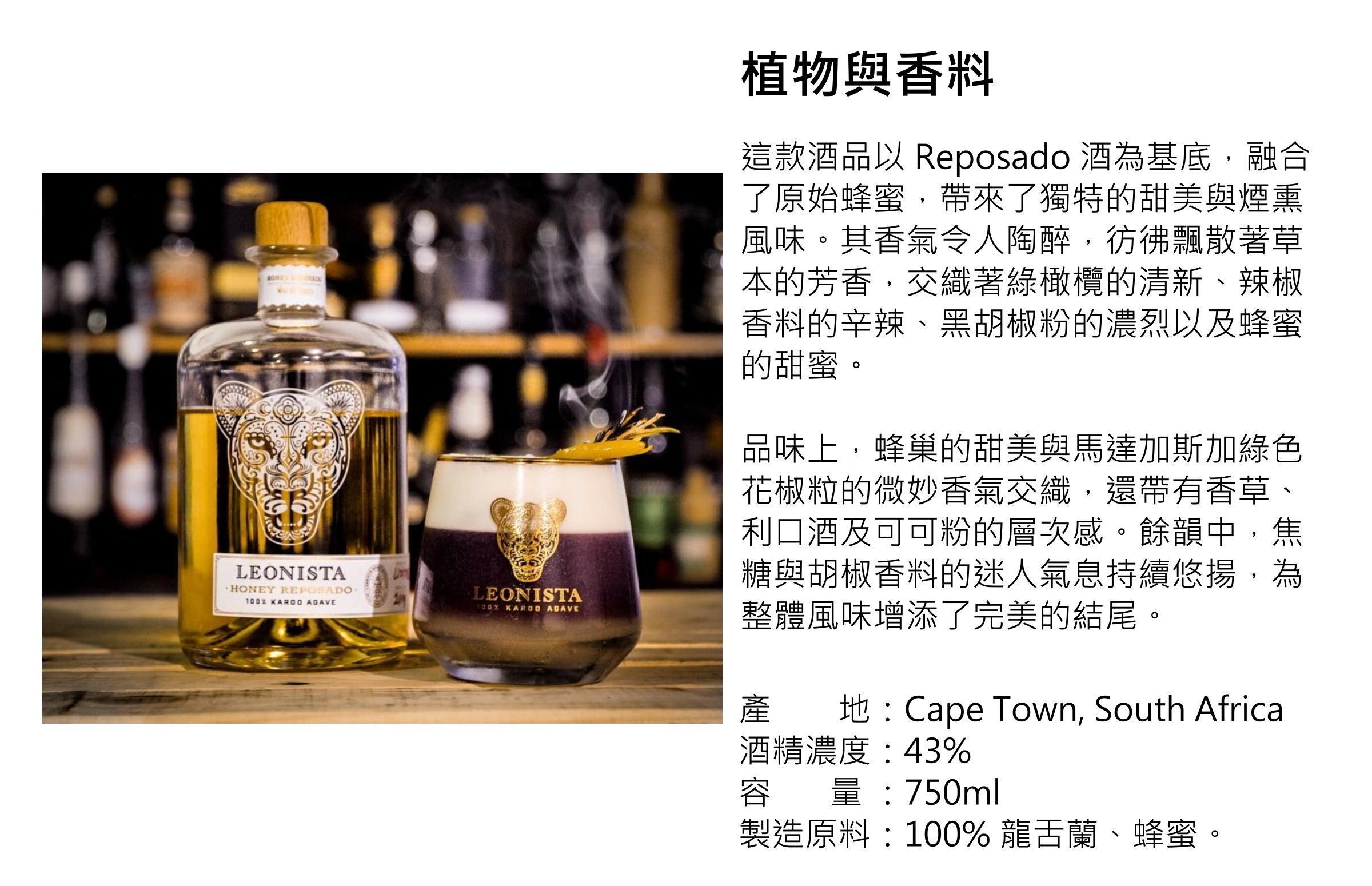 原料:100% 龍舌蘭、蜂蜜。