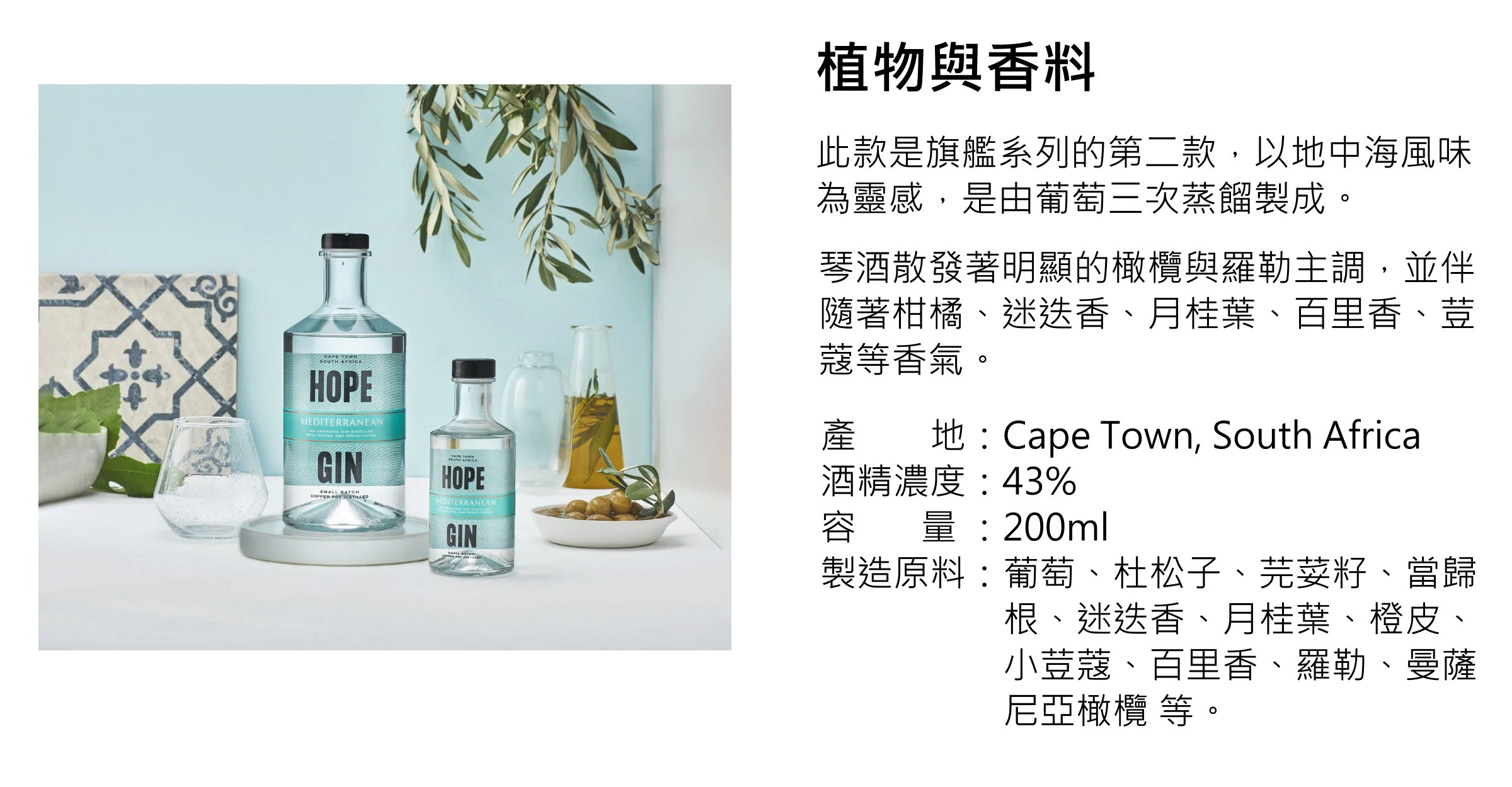 Hope Mediterranean Gin 希望 地中海小琴酒 | 200ml NT$820 [43%]