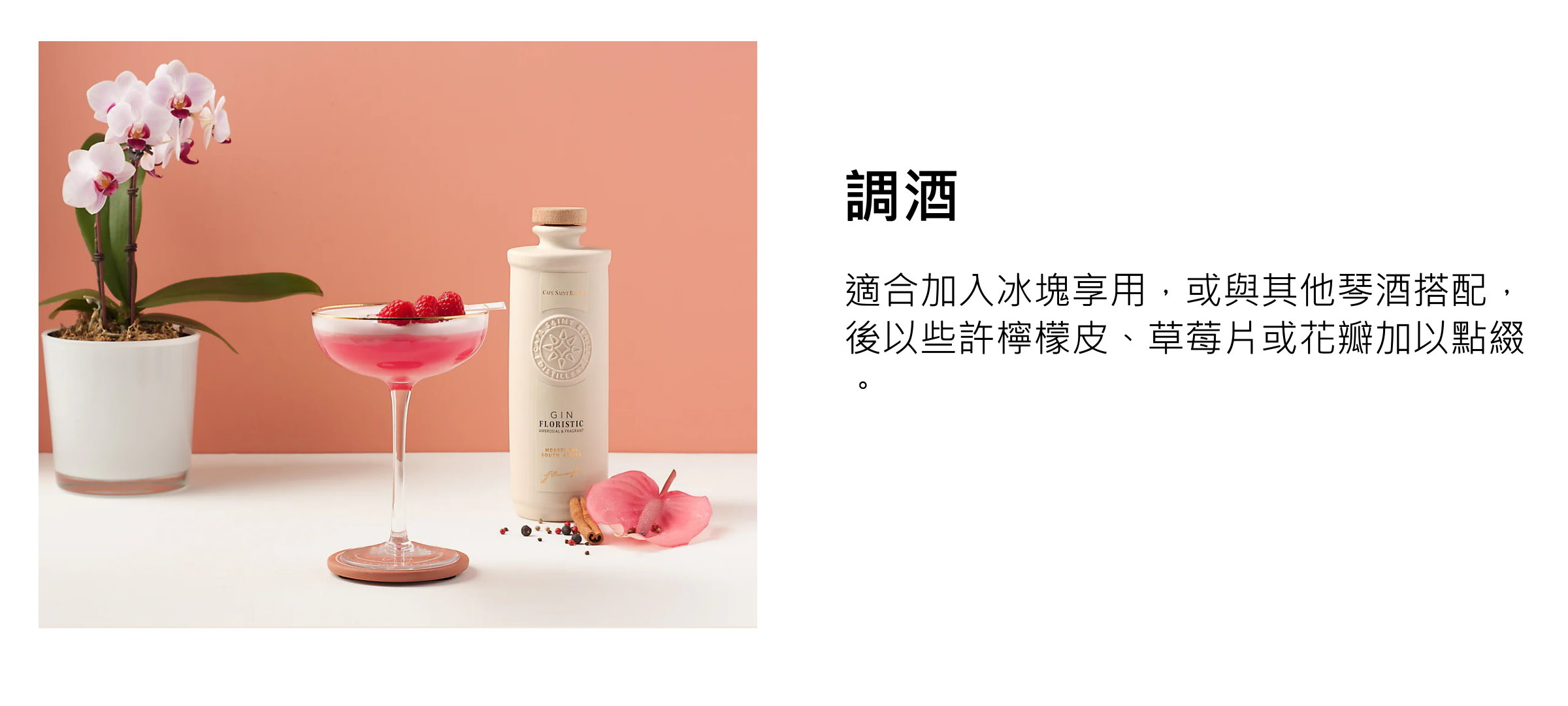 原料:甘蔗、杜松子、芫荽籽、草莓、天堂穀粒、天竺葵、粉紅胡椒粒、肉桂、石榴。