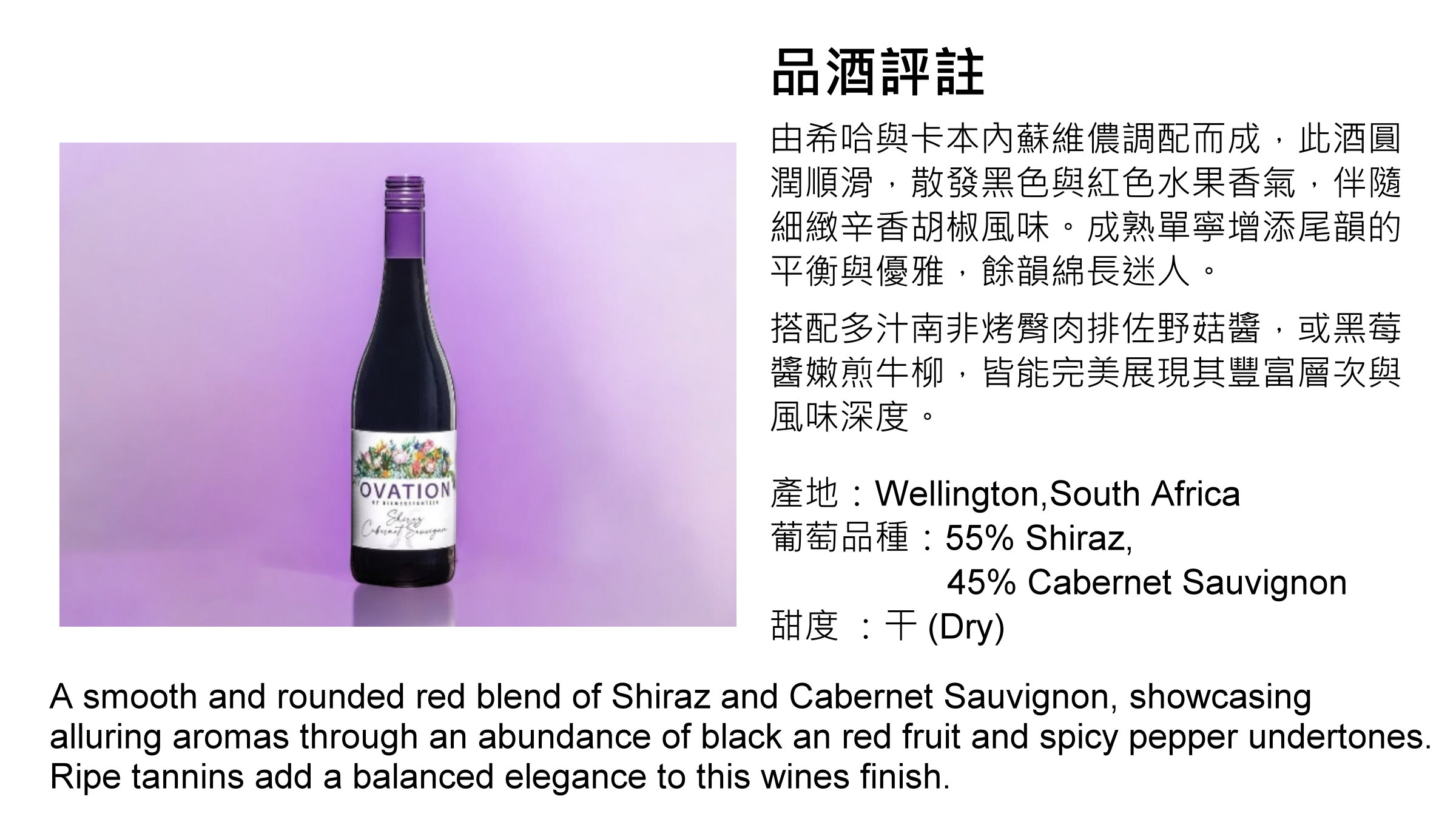 Diemersfontein Ovation Shiraz Cabernet Sauvignon 2023 迪摩斯峰登 歡慶 希哈/卡本內蘇維儂 | 750ml NT$640 [14%]